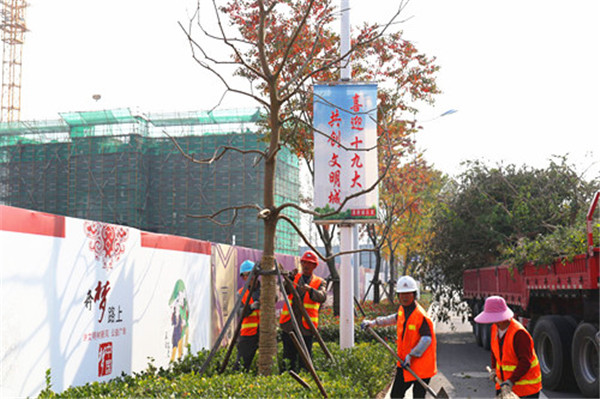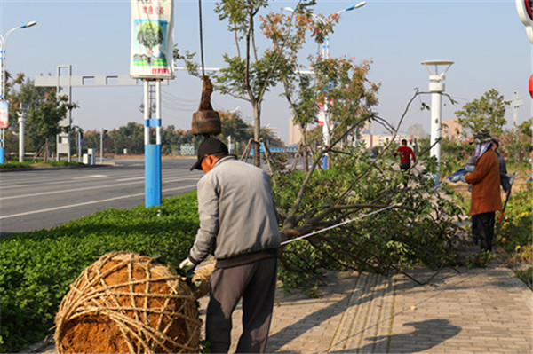 近期,開發(fā)公司安排綠化管養(yǎng)期內(nèi)的施工單位,根據(jù)園區(qū)2017年秋季綠化補植任務(wù)分解表,展開園區(qū)商住區(qū)行道樹、富民河北岸景觀綠化和工業(yè)區(qū)行道樹的補植工作,此次補植柿樹、重陽木、櫸樹、欒樹等喬木以及紅葉石楠、八角金盤、金絲桃等灌木。