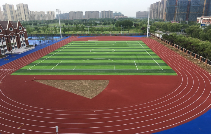 本次體育場地工程主要包括300米塑膠跑道、1個燈光足球場、3片籃球場和3片排球場。 2018年11月,塑膠跑道國家強制性標準《中小學合成材料面層運動場地》GB 36246-2018正式實施,本體育場地項目從前期的規(guī)劃設計,到制定參數(shù),到施工過程中的選材用料和現(xiàn)場施工工藝的把控,嚴格按新國標實施,同時在校方見證下按要求對固體顆粒、膠水、PU等材料現(xiàn)場取樣并送至上海專業(yè)檢測機構進行復測,各項專業(yè)檢測報告均合格。在施工過程中狠抓質(zhì)量、盡職盡責,確保環(huán)保、安全、精品,目前項目基本完工,取得了較好的觀感效果,同時也將為學校體育教學和體育活動提供了良好的場地條件。