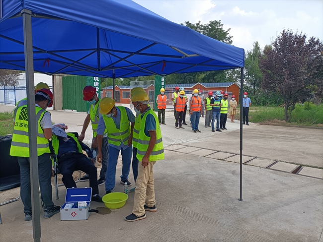 8月19日,開發(fā)公司結(jié)合夏季高溫天氣狀況在園區(qū)通湖大道電纜溝項(xiàng)目部組織高溫中暑應(yīng)急演練。