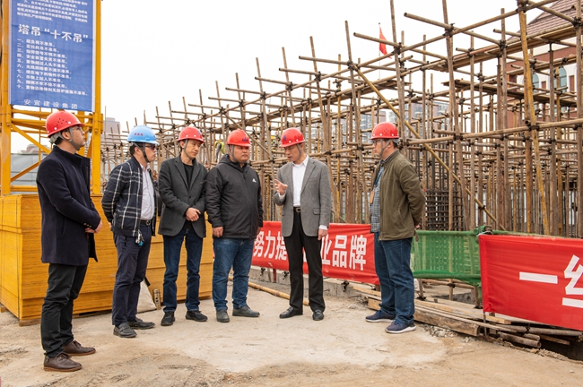 支部書記劉建華帶隊(duì)深入宿遷蘇州外國語學(xué)校南北校區(qū)擴(kuò)建現(xiàn)場,檢查施工安全、質(zhì)量及進(jìn)度,確保如期完成既定的時間節(jié)點(diǎn)任務(wù),解決群眾“急難愁盼”問題,滿足園區(qū)居民子女就近入學(xué)的需求,切實(shí)增強(qiáng)人民群眾的獲得感、幸福感、安全感。
