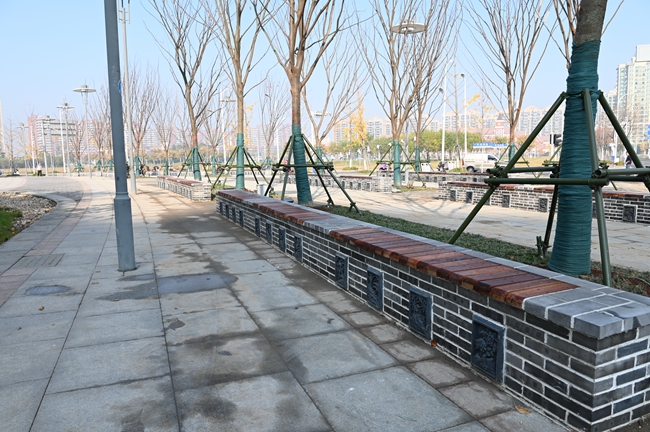 此次針對(duì)蘇州公園東北角處進(jìn)行重新栽植18株20CM的彩葉樹(shù)種的櫸樹(shù)和日本矮麥冬進(jìn)行栽植,同時(shí)為迎合蘇州街西入口整體景觀效果相協(xié)調(diào),增加更具“蘇式”韻味景觀長(zhǎng)條形式的坐凳滿(mǎn)足周?chē)用裆钚蓍e。