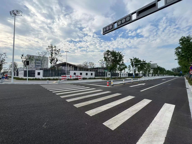 本次工程累計(jì)安裝隔離護(hù)欄1236米,警示柱12套,震蕩標(biāo)線713平米,夜間自發(fā)光三角警示牌19套,停車場(chǎng)指示牌2套,可拆卸防撞柱10套,臨時(shí)封閉移動(dòng)護(hù)欄100m。