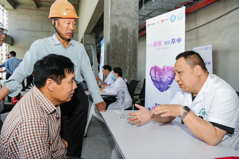 本次活動(dòng),由“城芯同筑”黨群服務(wù)站精心策劃,周密安排。宿遷市第一人民醫(yī)院內(nèi)科黨總支書記、大內(nèi)科副主任、風(fēng)濕免疫科主任臧銀耐心解答現(xiàn)場(chǎng)工友的健康疑問,根據(jù)工友的身體情況給予專業(yè)的醫(yī)療建議及指導(dǎo),得到了現(xiàn)場(chǎng)工友的一致好評(píng)?;顒?dòng)現(xiàn)場(chǎng)以建筑工地常見的意外傷害應(yīng)急處理為主題開展健康知識(shí)講座,生動(dòng)形象的講解處理意外傷害相關(guān)知識(shí)及應(yīng)急救援措施,同時(shí)現(xiàn)場(chǎng)開展全國(guó)“愛眼日”及中國(guó)“房顫日”等宣傳教育活動(dòng)。