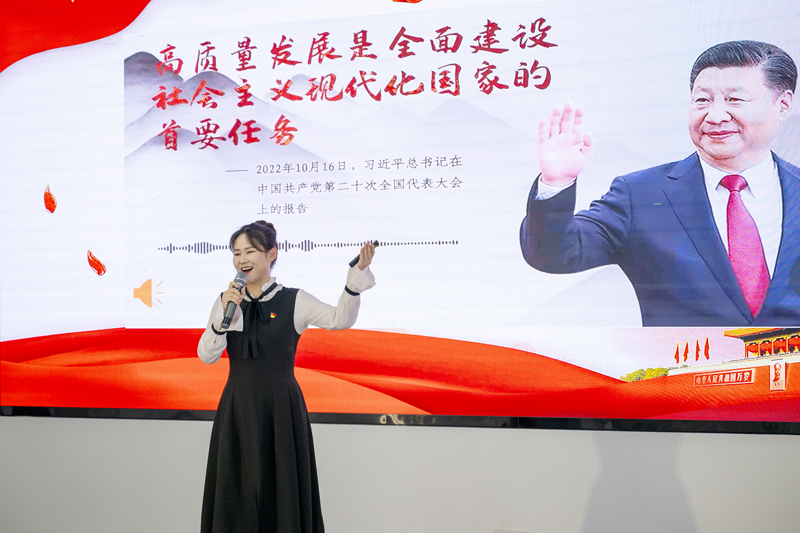 宣講比賽中,她聲情并茂,講述了園區(qū)十八年的發(fā)展歷程。從一片荒蕪之地的園區(qū)到高樓林立的現(xiàn)代化園區(qū),這十八年承載著園區(qū)人的奮斗精神,她說(shuō):“要深入學(xué)習(xí)貫徹黨的二十大精神,以青年人的責(zé)任與使命擔(dān)負(fù)起園區(qū)發(fā)展重任,‘二次創(chuàng)業(yè),再燃激情’,為拓園發(fā)展貢獻(xiàn)自己的青春與力量。”