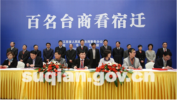 在宿遷投資環(huán)境推介會(huì)上還隆重舉行了項(xiàng)目簽約儀式。經(jīng)過前期深入溝通和洽談,此次“百名臺商看宿遷”活動(dòng)取得了一批可喜的項(xiàng)目合作成果,宿豫區(qū)、宿城區(qū)、宿遷經(jīng)濟(jì)開發(fā)區(qū)和市有關(guān)部門與臺灣島內(nèi)企業(yè)共達(dá)成13個(gè)項(xiàng)目投資意向,協(xié)議總投資達(dá)114.4億元,涉及新能源、新材料、軟件服務(wù)外包、機(jī)械制造、環(huán)??萍肌㈦娮?、食品等多個(gè)領(lǐng)域。