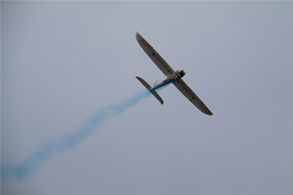 頭頂藍(lán)天白云,腳踩綠蔭草地,伴著音樂,聽著講解,宿蘇外的學(xué)子以及家長們滿臉的喜悅,他們仰望著一架架航空飛機模型飛上天空,不時發(fā)出“啊……啊……”的驚呼聲。