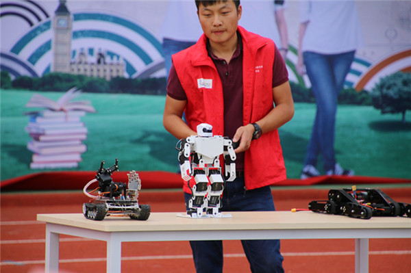 表演中,兩臺多軸飛機在場地作繞場及8字飛行,在飛行4分鐘后,隨著背景的高潮音樂響起,在空中打開了橫幅——“共創(chuàng)文明社區(qū),締造幸福家園?!彪S后,無論是機器人的介紹演示、固定翼無人機的拉煙表演還是直升機表演,又或是像真機空中格斗飛行,都讓同學(xué)們在互動和操作中充分感受到了科技的飛速發(fā)展,拓展了視野,更對航空模型制作產(chǎn)生了濃厚的興趣。