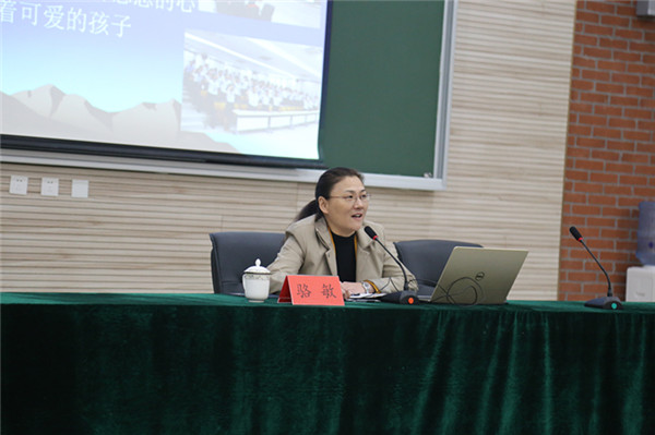 駱敏從“做教師的意義、如何成為學(xué)生心目中的好老師和如何成為大家心中的好老師”三個(gè)方面給老師們上了一堂別開(kāi)生面的專(zhuān)業(yè)發(fā)展課。駱敏指出,教師應(yīng)該具有高尚奉獻(xiàn)、完善自我的意識(shí),特別要從細(xì)節(jié)方面、從學(xué)生的角度思考,開(kāi)啟通向優(yōu)秀教師的通道。駱敏認(rèn)為學(xué)生心目中的好老師應(yīng)該是一名演說(shuō)家、幽默大師,具有獨(dú)特的教學(xué)藝術(shù),對(duì)孩子能夠真誠(chéng)贊美、懂得尊重學(xué)生、真心關(guān)愛(ài)學(xué)生。作為好老師,應(yīng)該修德、修志、修學(xué)、修能、修性,有欣賞的眼光,感恩的心態(tài)。