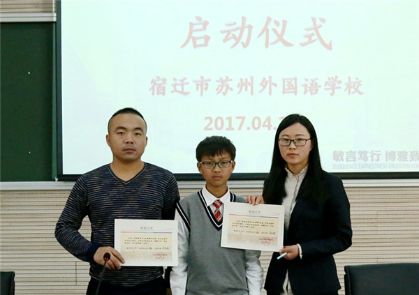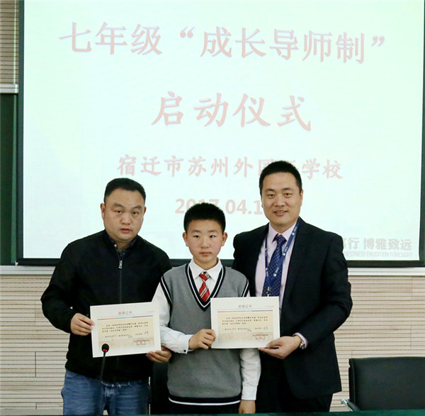 近日,宿遷市蘇州外國語學校七年級16位孩子和他們的家長監(jiān)護人還有他們新認的“干爹”“干媽”齊聚學校階梯教室,舉行隆重的簽約儀式。這些“干爹”“干媽”是學校給首批孩子們配的成長導師,每位教師與一個孩子結(jié)對,全方位關(guān)心孩子的成長,陪伴孩子們一起度過快樂而充實的初中生活,力求“個個進步,人人成星”?!俺砷L導師制”這種親情化、個性化、人本化的育人模式,是宿蘇外實施素質(zhì)教育,提升教育核心競爭力的需要;是宿蘇外服務家長,擴大教育品牌影響力的需要;是宿蘇外回報社會,落實“兩聚一高”,建設和諧社會的需要。